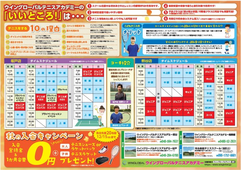 いよいよ秋のテニススクール入会キャンペーンが始まります!