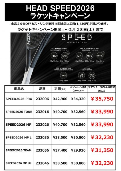 🎾【HEADキャンペーン速報】SPEED 2026シリーズが20%OFF!ストリング無料サービスも実施中!