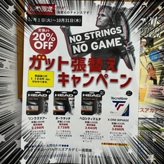 ウィングローバルテニスアカデミー南栗橋では、ただいま「ガット張替えキャンペーン」