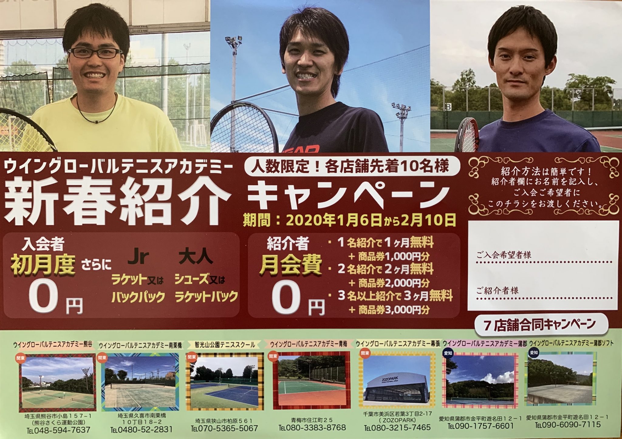 ウイングローバルテニスアカデミー7店舗合同企画!...
