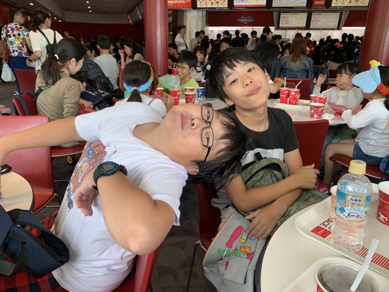 途中、スプラッシュ・マウンテンを2回目に乗る組や帰宅間際の最後のあがきでピーターパン空の旅を乗る組に分かれたりしましたが、最大12個のアトラクションに乗れました!