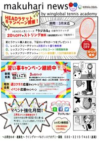 ①②③のキャンペーンは今月末までですよー! 幕張テニススクール