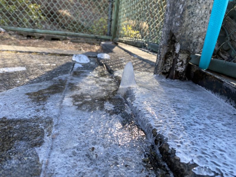 青梅のコート内にある水道もポタポタ落ちた水が・・・