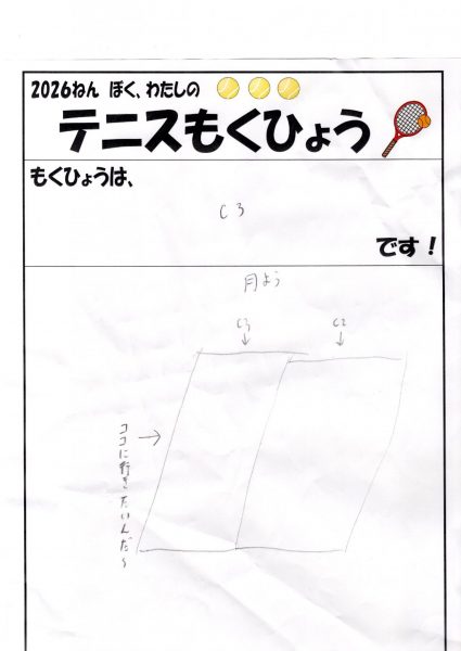 ジュニアの生徒さん達に、2026年のテニス目標を書いてもらいました。